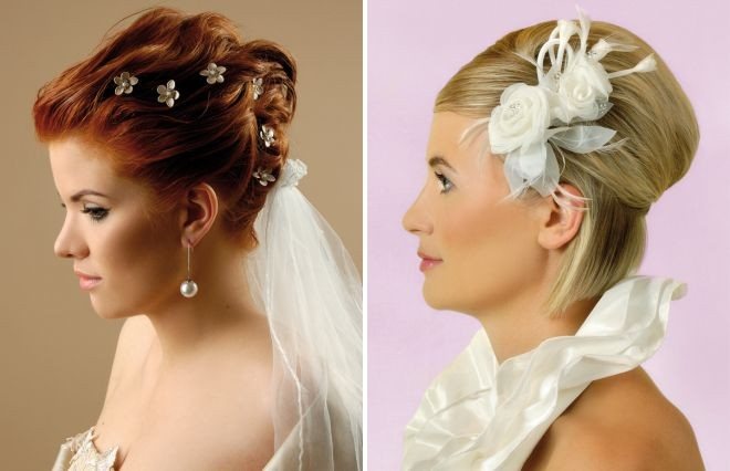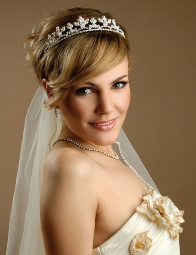 На таких волосах сложно создать торжественную причёску, но при помощи данного атрибута можно легко сделать образ невесты роскошным и незабываемым. Как правило, короткие волосы аккуратно укладывают или добавляют им пышности.