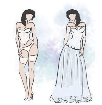- Можно использовать кружево и драпировки из ткани на лифе для создания иллюзии женственных изгибов. Таким образом можно придать объема нужным частям тела.