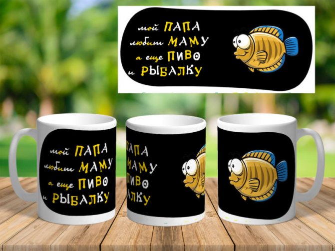 На керамике очень просто нанести принт с различными афоризмами и анекдотами. Если даритель хорошо знаком с виновником торжества, то можно разнообразить творчество и подарить кружку с термоэффектом. Когда в нее наливается горячий напиток, то на стенках чашки появляется смешной рисунок.