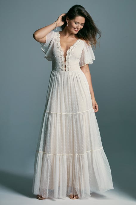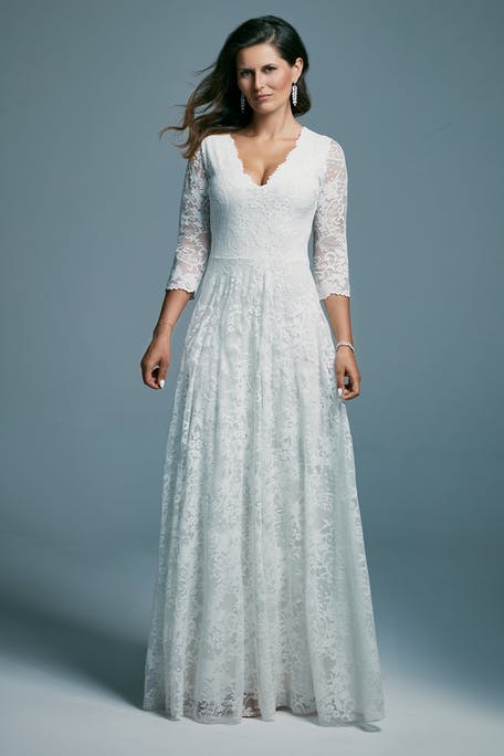 Если вы носите большие размеры или беременны и ищете более скромное свадебное платье, подумайте о модели, с вырезом под бюст