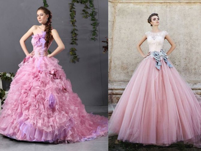 Свадебные платья с пышной юбкой выбирают многие девушки. Невеста в розовом наряде выглядит настоящей принцессой. Причем, длина в данном случае не имеет никакого значения. Романтический и нежный образу удается создать как при выборе моделей в пол, так и в случае с изделиями средней длины. Особо же эффектно смотрятся варианты с розами или другими цветами на юбке или же в верхней части.