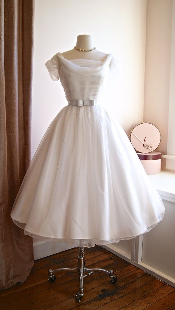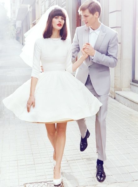 Ищете что-то более причудливое, чем кружево? Для того, чтобы по-настоящему сыграть винтажную свадебную атмосферу, наденьте короткое платье! Мода 50-х и 60-х даст вам возможность показать потрясающие стройные ножки.