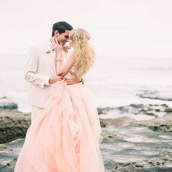 Невеста в розовом – это всегда женственно и умилительно. Богатство палитры этого цвета позволяет подобрать нужный вариант абсолютно каждой. Неуместно нежный оттенок смотрится на зрелых женщинах. Исключением станет цвет пыльной розы – этот оттенок идет всем.