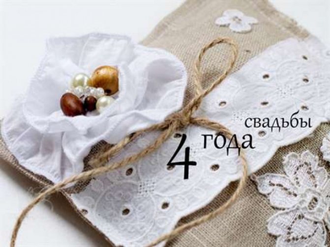 Следующим важным этапом, считается 4 года жизни, прожитые совместно в браке. Это дата считается особенным сроком в семье молодых людей. С одной стороны ваши чувства до сих пор пылают, как и раньше, но с другой стороны их уже необходимо подогревать и подпитывать. На ваш юбилей можно преподнести приятные сюрпризы друг другу.