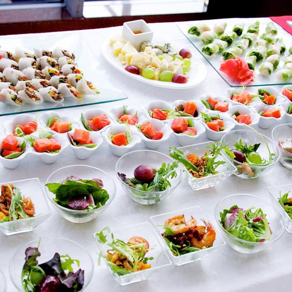 Бюджетным вариантом, подходящим для мероприятия за городом, будет организация шведского стола, где гости сами будут выбирать понравившиеся блюда. Это могут быть канапе, жюльен с грибами, мясные нарезки, нарезанные фрукты, барбекю и др.