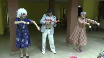 – А теперь, как и положено, я хочу преподнести вам подарки, – говорит Яга в продолжение этой сценки и вынимает из корзины презенты, которые дарит юбилярам.