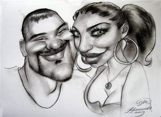 Если в вашей компании есть художник, вы можете попросить его нарисовать шаржи на мужа и жену. Для этого необязательно позировать – настоящий художник весь вечер наблюдает за окружающими, поэтому без труда сможет изобразить пару на полотне.