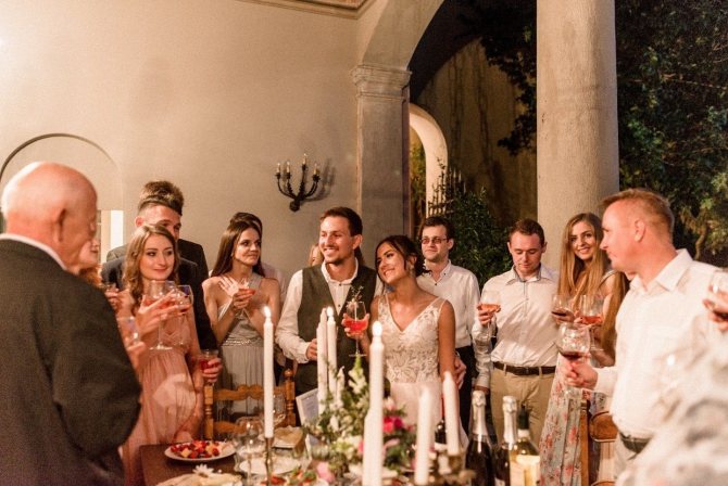 Важна и очередность тостов: в первую очередь их произносят родители молодоженов, затем бабушки и дедушки, подружки невесты и друзья жениха, родственники и, при желании, другие гости.