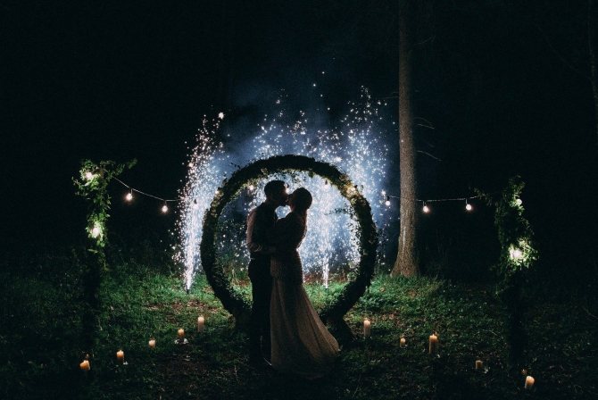 Также свадьба может завершиться романтической вечерней церемонией, когда новоиспеченные муж и жена произнесут свои клятвы и зажгут семейный очаг. Хорошей идеей будет заключительный тост молодоженов со словами благодарности для всех гостей.