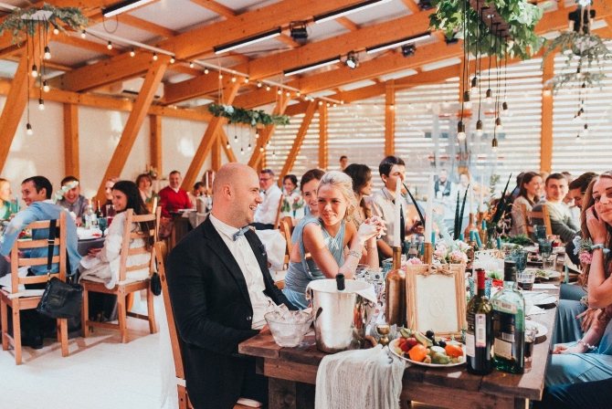 Свадебный ужин, как правило, объединяется с тостами гостей, но формат ужина во многом зависит от времени начала банкета, стиля свадьбы и количества желающих выступить с речью. Контроль над этой частью вечера лучше доверить ведущему: он проследит, чтобы у гостей было время насладиться ужином и общением друг с другом, а тосты не длились слишком долго (5 минут хватит, чтобы сказать все самое важное).