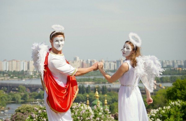 Свадьба – это самое подходящее время для слов о любви. Для сценки вам нужны парень, который сыграет Амура, еще один молодой человек и девушка. Желающие гости могут играть роли пассажиров. Создайте импровизированный автобус, расставив стульчики. Прикрепите «Амуру крылья и дайте ему лук и стрелы.