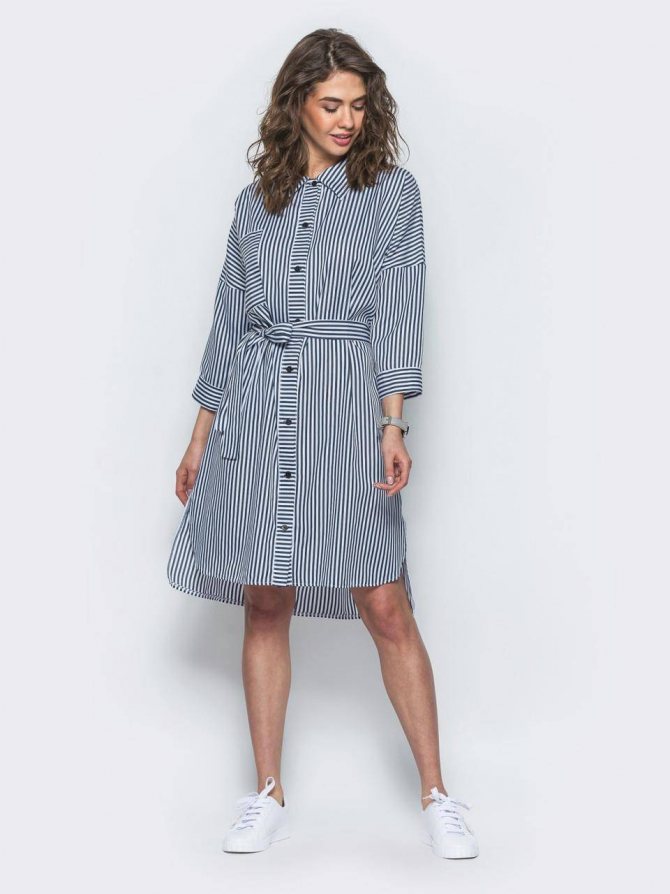 Отличительная особенность платья-рубашки – это свободный крой, без выточек, застежка по всей длине изделия, воротник, как у мужской рубашки.