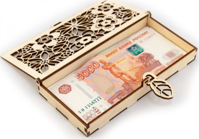 - Шкатулка с деньгами. На дно шкатулки выложите купюры, а сверху насыпьте монетки разного номинала.