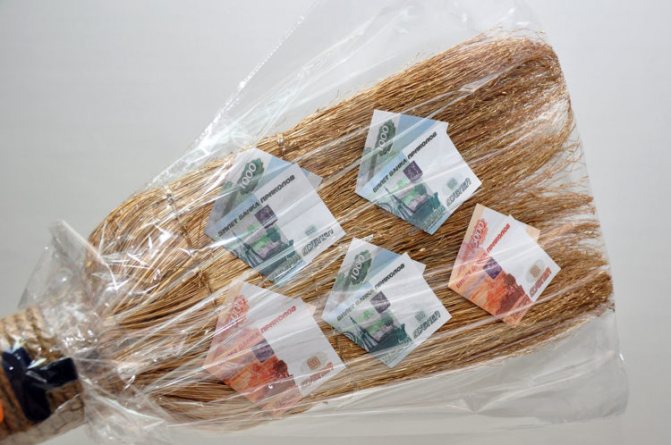 - Бабломет. Прикрепите купюры к обычному венику, украсьте его бантиками, ленточками и вручите молодоженам на свадьбе.