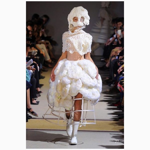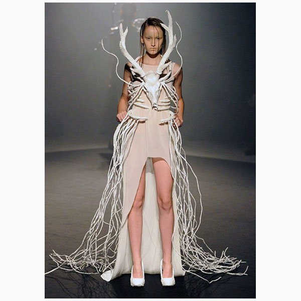 Действительно, классические фасоны на подиумах уже неактуальны, в них нечему удивляться, поскольку все допустимые фишки уже перепробованы. Что же, остаются недопустимые! И вот тогда на показах свадебных мод можно увидеть все что угодно: от египетской мумии со стилизованным черепно-мозговым подолом и чем-то, отдаленно напоминающим осиное гнездо на голове до «чуда в перьях», причем это даже не метафора.