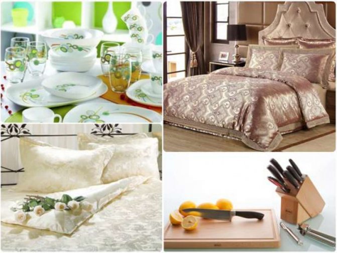 - Выбирайте всё высшего качества, сдержанного стиля (бельё — белоснежное, полотенца — только махровые, добротная посуда), но и за дороговизной не гонитесь. У вашего молодого мужа не должно возникнуть ощущения, что вы «задавили» его своими вещами — пусть ваше приданое говорит о скромности и заботе, а не о желании прихвастнуть достатком.