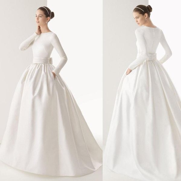 Можно остановить свой выбор на красивом минималистическом свадебном платье. Как правило, крой такого платья цельный и имеет линию отреза с завышенной талией