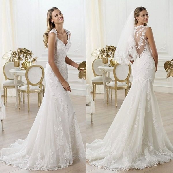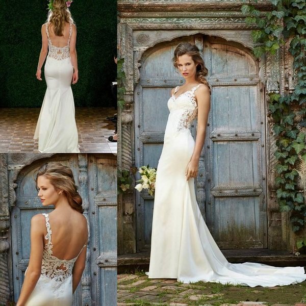 Девушке, желающей подчеркнуть стройные изгибы своего тела можно остановить свой выбор на подвенечном платье с небольшим вырезом, которое облегает фигуру от уровня груди до щиколотки. Весьма эффектно смотрится наряд русалка, который расклешен от колена.