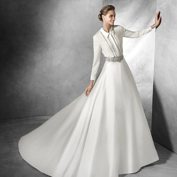 Прямые свадебные платья могут быть дополнены поясом, иметь длинные либо короткие рукава. Стройные и худенькие красавицы невысокого роста будут выглядеть в нем бесподобно, поскольку такой подвенечный наряд визуально вытянет фигуру.