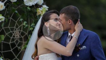 Свадебное оформление — это необязательно флористические мотивы. Можно создать арку с вензелями и рядом стоящими легкими тумбочками. К ним дополнительно закрепляются искусственные цветы, полупрозрачный текстиль: вуаль, шифон, органза. Красивая узорная конструкция также может сыграть роль алтаря для выездной церемонии.