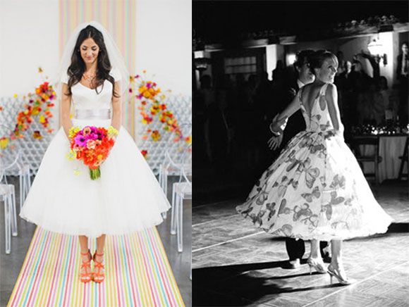 Важно продумать наряд для молодоженов. Ведь традиционный наряд – это так скучно! Невесту следует нарядить в яркое платье до колена с пышной юбкой-клеш. Платье может быть любым по цвету: фиолетовым, зеленым, оранжевым, а волосы подвязать лентой такого же цвета. Фату не одевали, а вот перчатки были необходимы. Обязательно длинные, до локтя.