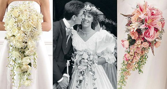 В первом случае букет невесты собирается из цветков на длинном стебле, перевязывается ленточкой. Отдайте предпочтение калам, гладиолусам, гвоздикам и розам. Нетривиально смотрится «водопад» ниспадающих цветов в руках невесты. Букет, оформленный в виде каскада, может растянуться в длину до метра, а поэтому подойдет высоким и стройным невестам.