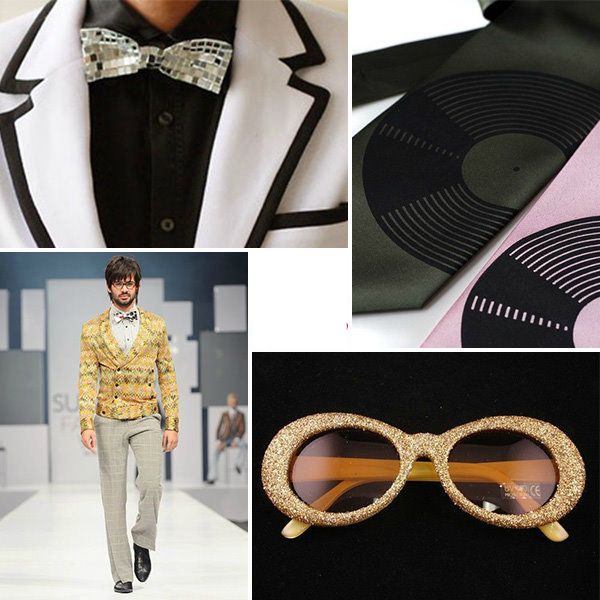 Образ жениха в стиле диско предполагает однотонный пиджак, смокинг. Обязательно борты украшаются блестками. Под туфли надеваются пестрые носки, да и вообще стиль может быть скопирован со сценического образа легендарного Элвиса Пресли.