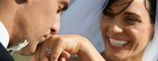 Поссорившись вдруг, улыбнитесь друг другу Вы ведь отныне супруг и супруга. Мужу прощай ты футбол и рыбалку, И не хватайся сразу за скалку.