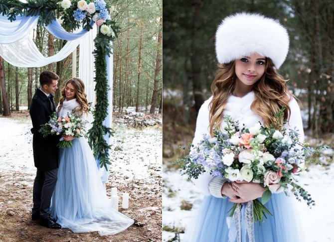 - Ограничения в выборе одежды. Нужно признать, что зимой не так много нарядов можно выбрать. Кроме того, для фотосессии на улице дополнительно понадобятся теплые вещи, например, меховая накидка или шубка, зимние сапожки, а то и валенки на случай, если свадьба планируется в русском стиле. Все это требует дополнительных расходов.