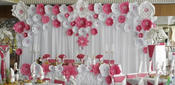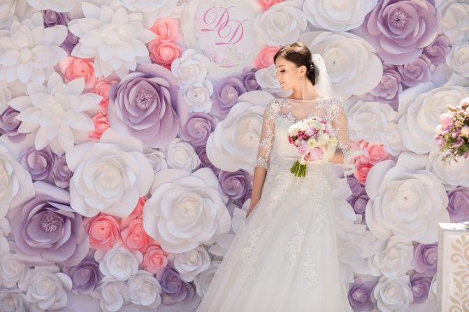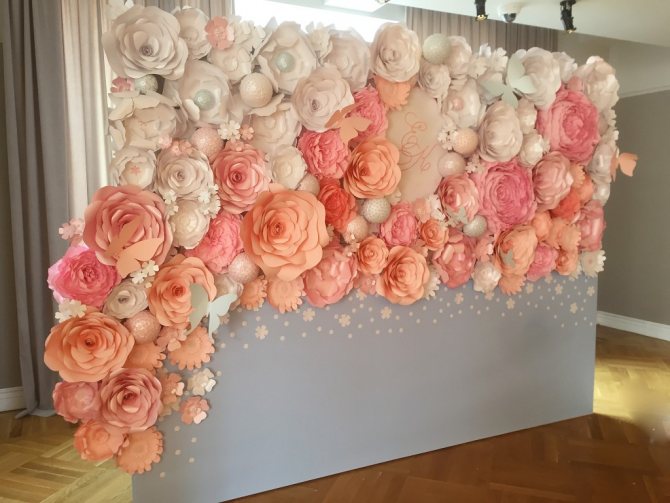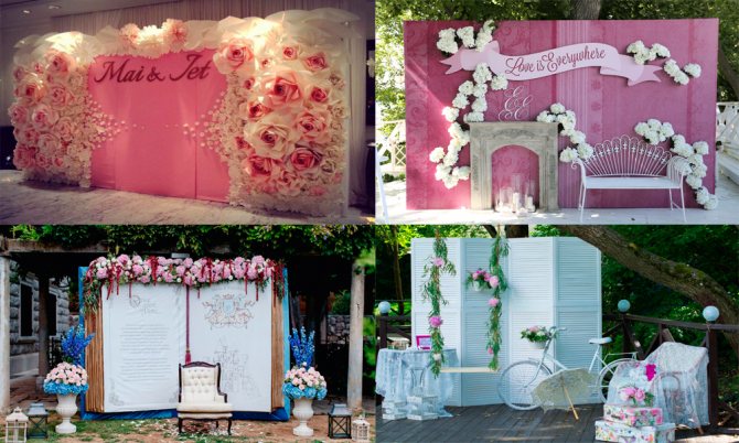 Живые цветы лучше не применять, потому что за целый день они просто завянут и испортят красивый дизайн фотозоны.