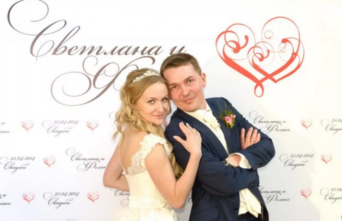 На баннерах всегда ключевое значение имеют именно надписи. Они могут быть короткими — отображать только имена молодоженов и дату их свадьбу, могут быть более содержательными — если написать цитату о любви.