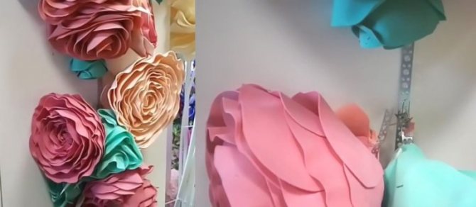 Пусть они будут разной формы — просто гармонично их распределите по стене. Выбирайте не самый яркий фоамиран, идеально подойдут для свадьбы — цветы нежных и теплых оттенков.