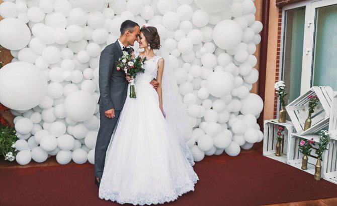 Почему бы взрослым не вспомнить об этом и не использовать шары в качестве основного украшения для своей свадебной фотозоны.