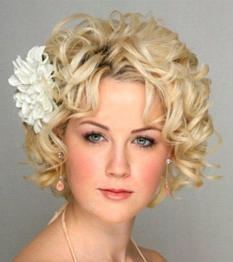 Прически на короткие кудрявые волосы могут быть выполнены в классическом голливудском стиле с нежными локонами, и в озорном современном – с дерзкими завитками на затылке и выпрямленной косой челкой.