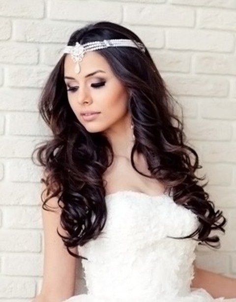 Свадебная прическа для длинных кудрявых волос с повязкой.