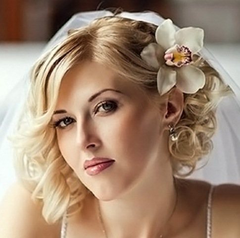 С такой его формой очень сложно замаскировать недостатки. Поэтому чем мягче овал лица невесты, тем больше ей подойдут кудри на короткие пряди.