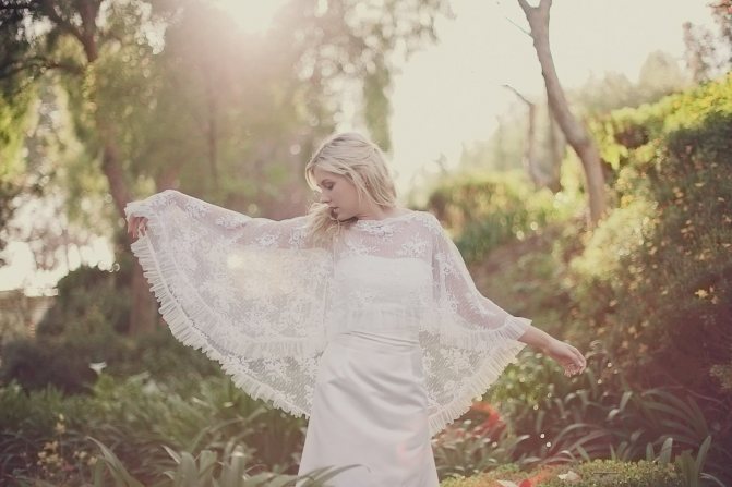 Накидка для невесты — это хоть и необязательная, но очень полезная и красивая деталь торжественного гардероба. Она не только дополняет образ и выполняет согревающие функции в холодное время года, но и способна придать Вашему силуэту правильные пропорции. В зависимости от обстоятельств её можно в любой момент надеть или снять.