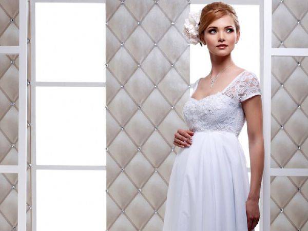 Для беременных невест оно будет просто идеальным вариантом, независимо от срока. Невесте в свадебном платье должно быть удобно, и оно не должно нигде давить, ведь дискомфорт будущей мамы причиняет дискомфорт и будущему малышу. Отметим, что при солидном животике фигура кажется более пропорциональной, чем в свадебном платье любого другого фасона.