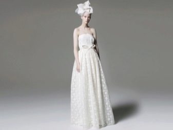Используйте атласную ленту, повязав ее сзади в бант, стразы, бусины, бисер, тканевый цветок спереди, чтобы правильно акцентировать внимание. Изящно будут смотреться как открытые плечи, так и закрытые