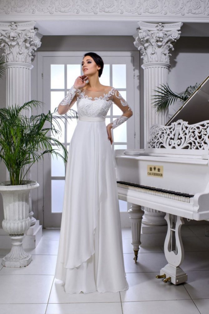 У вас свадьба зимой или прохладной осенью? Тогда вам понадобится торжественное платье с рукавами. Воздушный Ампир нельзя утяжелять плотной тканью на руках, поэтому остановите свой выбор на кружеве. Этот нежный материал красиво смотрится на лифе или на широкой полосе, подчеркивающей талию. Дополните образ чувственной невесты в свадебном платье с кружевными рукавами брошью. Женственно и нежно выглядят девушки, когда эта нежная ткань сочетается с приоткрытой спиной. Кружево создает неимоверно сексуальный образ.