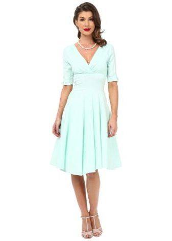 - Платья могут также полностью закрывать плечи, и тогда следует выбирать вырез в форме английской V или же прямоугольный.