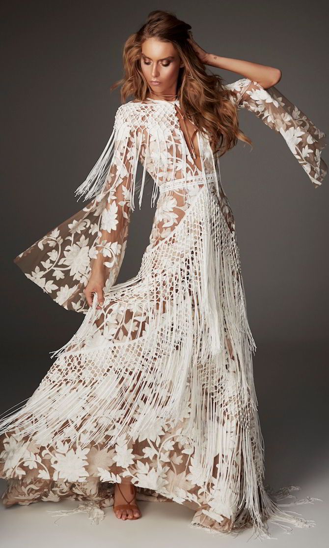 Платье на свадебное торжество в богемном стиле бохо часто предлагают именитые производители. Наиболее популярными являются бренды YolanCris и BHLDN, имеющие отличительные особенности, которые делают модели узнаваемыми среди множества других: