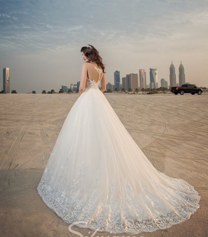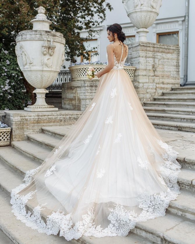 - Шлейф – это деталь не обязательная, но предпочтительная для многих женщин. Он смотрится утонченно, изысканно. Но не всегда удобно. Поэтому остановитесь на изделии, в котором шлейф отстегивается.