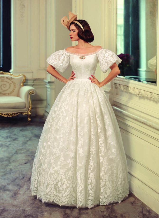 Создать неповторимую атмосферу, пропитанную роскошью и шиком, поможет ретро стиль. Для создания платьев дизайнеры используют натуральные ткани, французское кружево, жемчужины, кристаллы. Платья в стиле ретро могут иметь любую длину. Шьются прямого и парусного фасона. Невероятно женственно выглядят модели из атласа. Винтажные платья выбираются с учетом общей стилистики свадебного мероприятия. Свадебные платья в стиле винтаж 50-х годов имеют пышную юбку. Они отлично решают проблемы с выступающим животиком, боковыми складками и с другими выдающимися местами, которые хотелось бы скрыть.