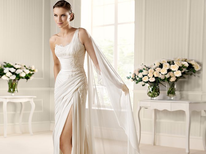 Такие платья особенно женственны. Очень нежно смотрятся красивые длинные свадебные платья в греческом стиле.