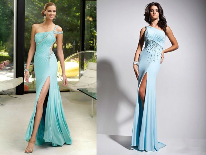 Просто шикарно выглядит платье со шлейфом! Оно к лицу лишь стройным и высоким девушкам. Если вы выбрали такой вариант, он подчеркнет идеальную фигуру. Смотрится изделие очень изящно и откровенно. Стиль подчеркивает разрез, визуально удлиняя ноги.