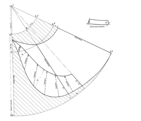 Выкройка юбки и шлейфа с воланами, а также воротничка