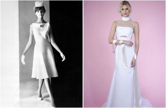 Сейчас: лаконичность 60-х однозначно пришлась по вкусу современным модницам. Такие топовые свадебные дизайнеры, как Angel Sanchez, обязательно включают в свои коллекции простые платья геометричного кроя, подчеркивающего фигуру.