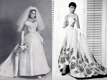 Невестам 50-х тоже приглянулся этот воздушный «цветочный» образ. Свадебные платья этого периода мало чем отличались от вечерних или коктейльных — цвет не в счет. Подвенечный наряд дополняли комплектом высоких белоснежных перчаток и изящными остроносыми лодочками.