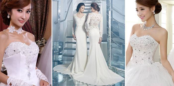 Этот вид декора сочетает в себе все преимущества используемых способов создания изображения. Главное, правильно подобрать его с учетом особенностей самого платья и внешности невесты.